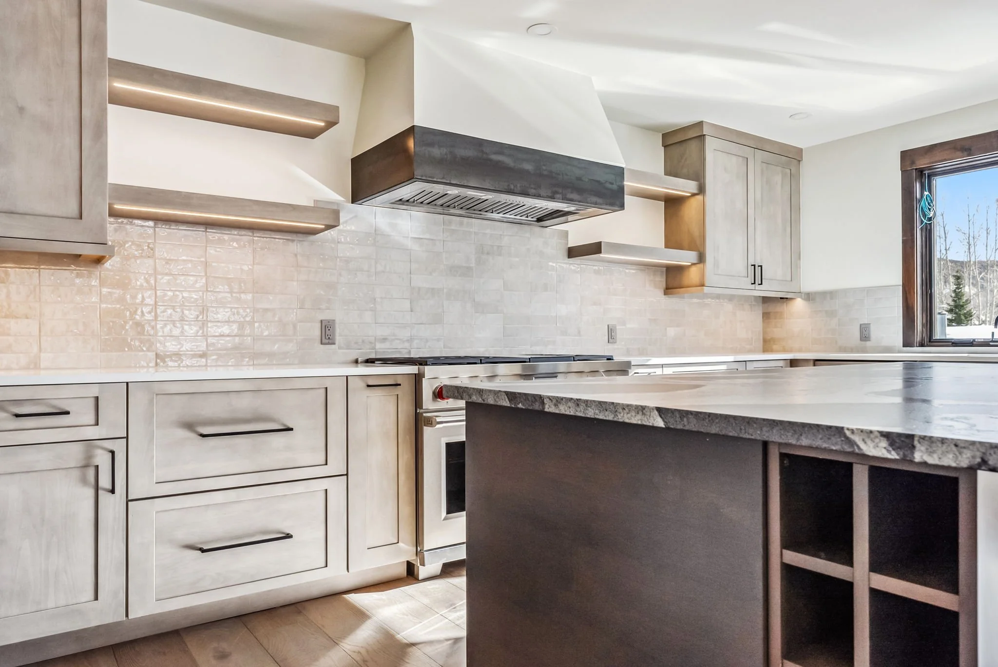 A developer approached me to design four homes (two-duplexes) on the same lot in the hopes of selling the homes for profit. Each of these homes is around 5,000 SF with 4-6 bedrooms and 4-6 bathrooms they call their own. In all the homes we focused on a mountain-modern style, cool, but warm tones and always had in mind appealing to the public. Even though they all had a similar concept, each home has its own curated design. AGL-4 incorporated hot rolled metal accents + black and satin nickel fixtures throughout. This house, as well as another of these spec homes have already been on the market and off before the build has completed. Check out AGL-1, AGL-2 + AGL-3 to see all the homes!